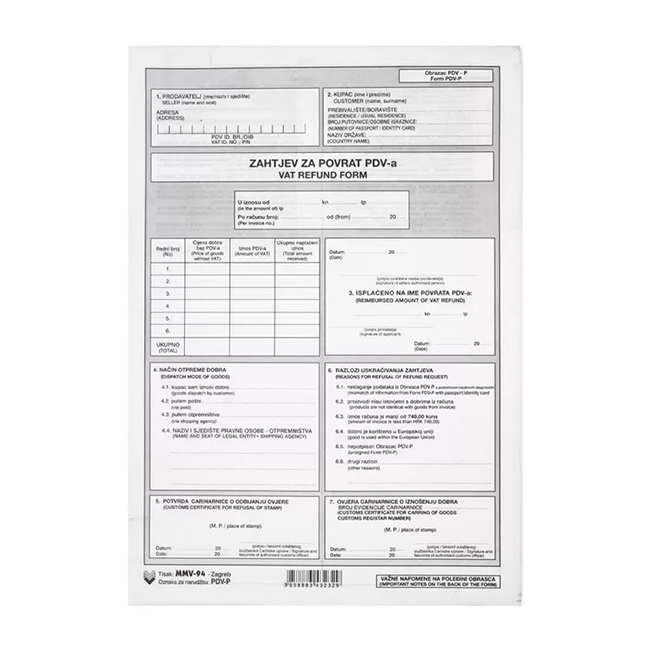 US-I-505/13 Zahtjev za povrat PDV-a, obrazac PDV-P